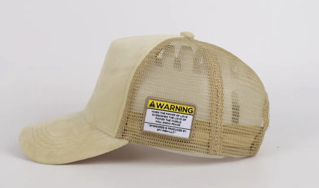 Add a touch of luxury to your look with our Velvet Trucker Hats. Featuring a soft velvet front and breathable mesh back, these hats offer both style and comfort. Available in chic lilac and neutral beige, they are perfect for any occasion. The adjustable snapback closure ensures a great fit for all. Each hat proudly displays the SPY Clothing logo and an inspiring message: "WHEN THE POWER OF LOVE OVERCOMES THE LOVE OF POWER, THE WORLD WILL KNOW PEACE."